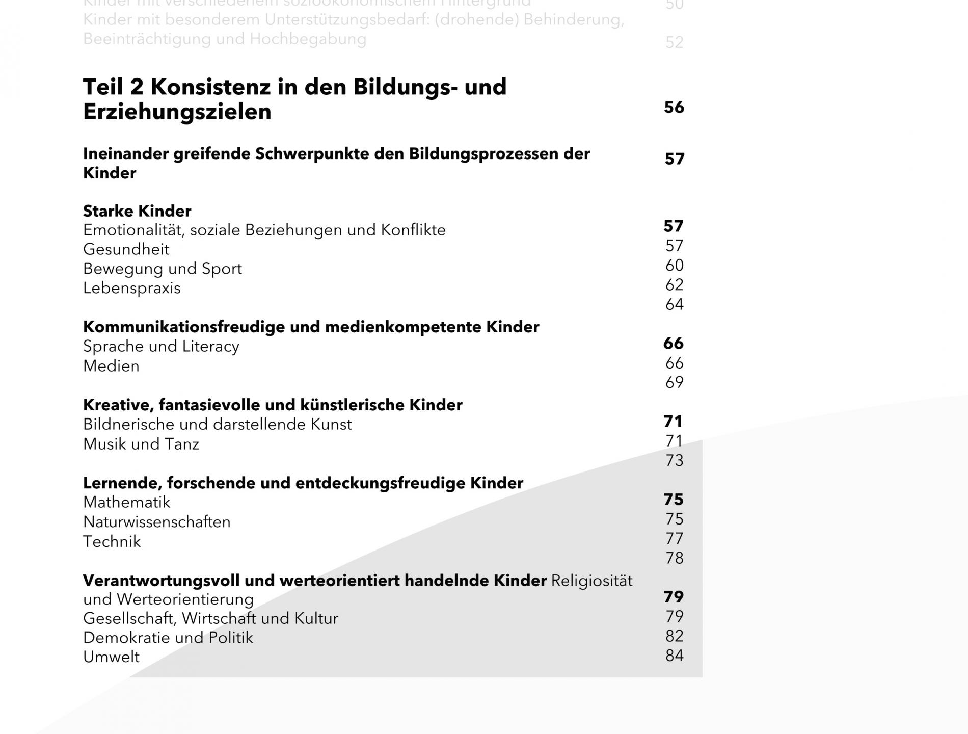 In Teil 2 geht es um Bildungsbereiche, -prozesse, und -ziele. Also darum, was Bildung umfasst.