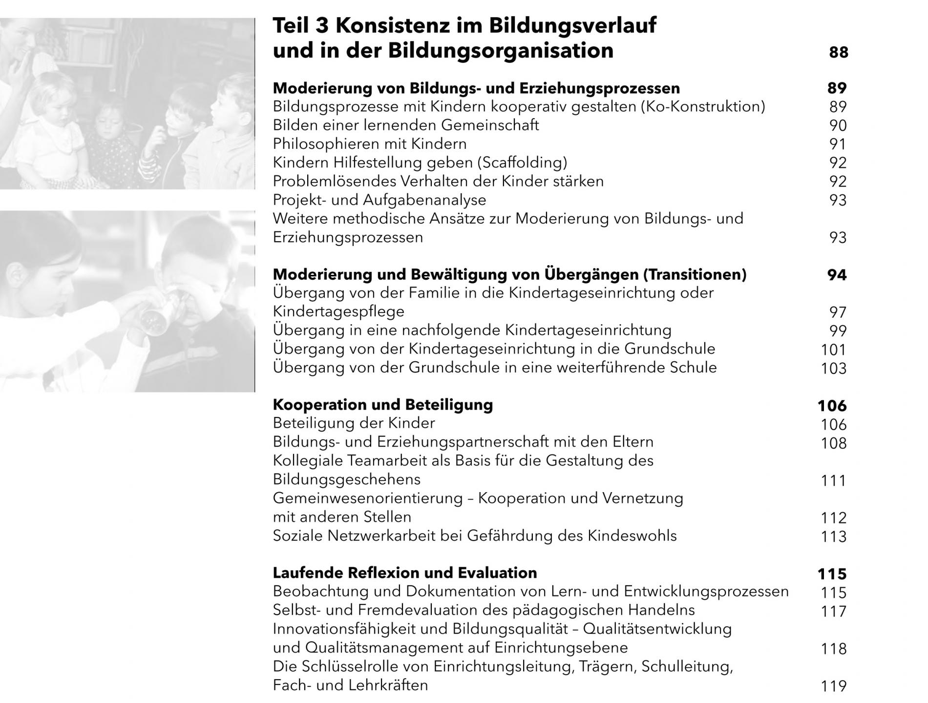 In Teil 3 geht es um die Art und Weise, wie Bildung übergreifend gestaltet wird, also um die Frage, womit und mit wem Bildung geschieht.
